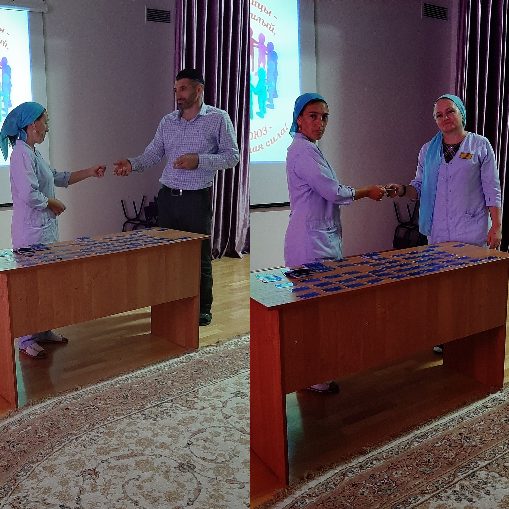 Председатель профсоюзного комитета М.Сабдулаева провела сегодня беседу с коллегами по решению возникших вопросов, и там же раздала коллективу новые электронные профсоюзные билеты.