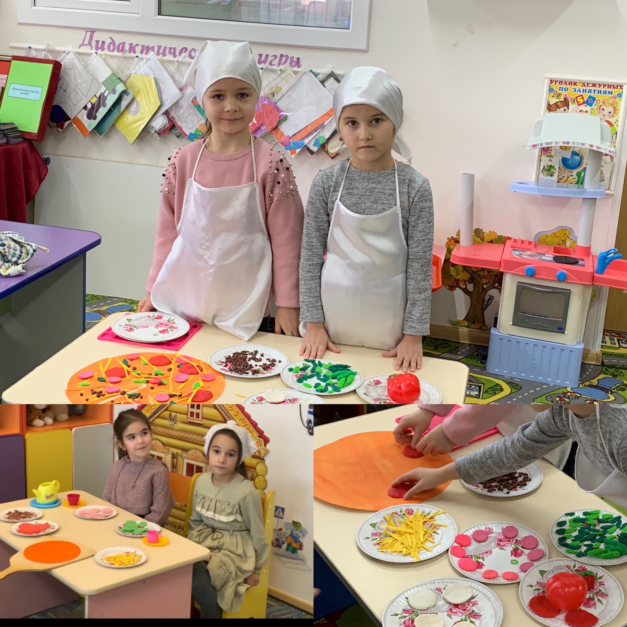 Сюжетно-ролевая игра «Пиццерия для всей семьи» в подготовительной и старшей группе “Солнышко» и «Бабочки». Цель: сформировать у детей многоаспектное представление о деятельности предприятия общественного питания.