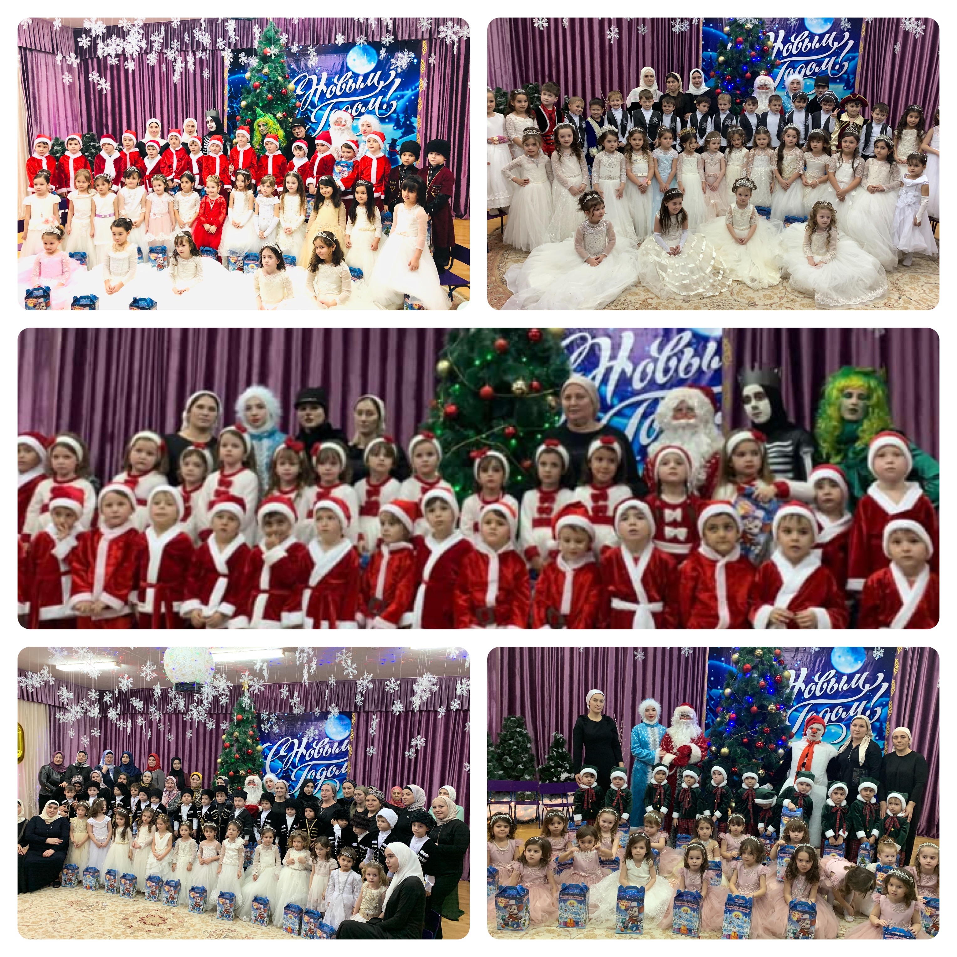 Красиво украшенный зал, нарядная елка, великолепные костюмы, подарки, Дед Мороз, Снегурочка и множество других сказочных персонажей ожидали детей и родителей детского сада.