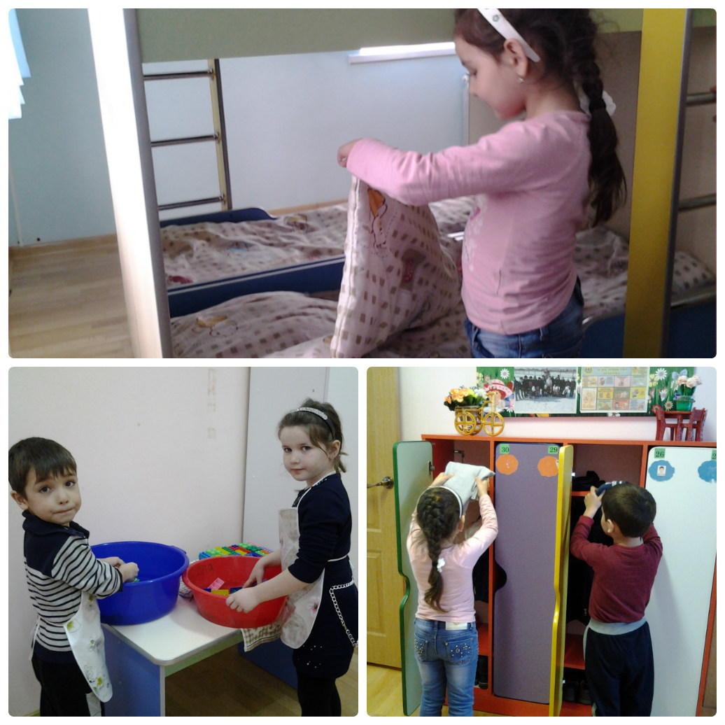 Наши педагоги стремятся привить ребенку ответственность за выполнение определенного поручения, чувство долга, расширить его мировоззрение, нравственность и круг интересов.Большое значение в таком воспитании имеет бытовой труд, который включает в себя навыки самообслуживания, соблюдение порядка в группе и в собственных шкафчиках, а так же выполнение правил личной гигиены.
