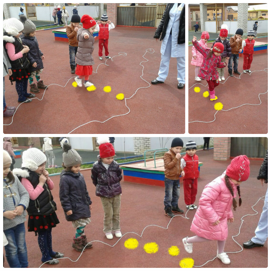 Цель сегодняшней игры: развитие координации движений. На игровой площадке проводят две линии (можно извилистые) на расстоянии 1,5-3 м. друг от друга (в зависимости от возраста играющих детей).Это "ручеек". Через "ручеек" проложены камешки на расстоянии 20-30 см. друг от друга. Они расположены с таким расчетом, чтобы ребенок мог без особого труда перебраться с одного камешка на другой, а затнм и с одного бережка ручейка на другой.Воспитатель подводит играющих детей к черте (бережку ручейка) и объясняет, что нужно по камешкам перебраться на другой берег, не замочив ноги.Затем воспитатель показывает как это нужно делать. За воспитателем дети по очереди, перепрыгивая с камешка на камешек, перебираются на другой берег ручейка.