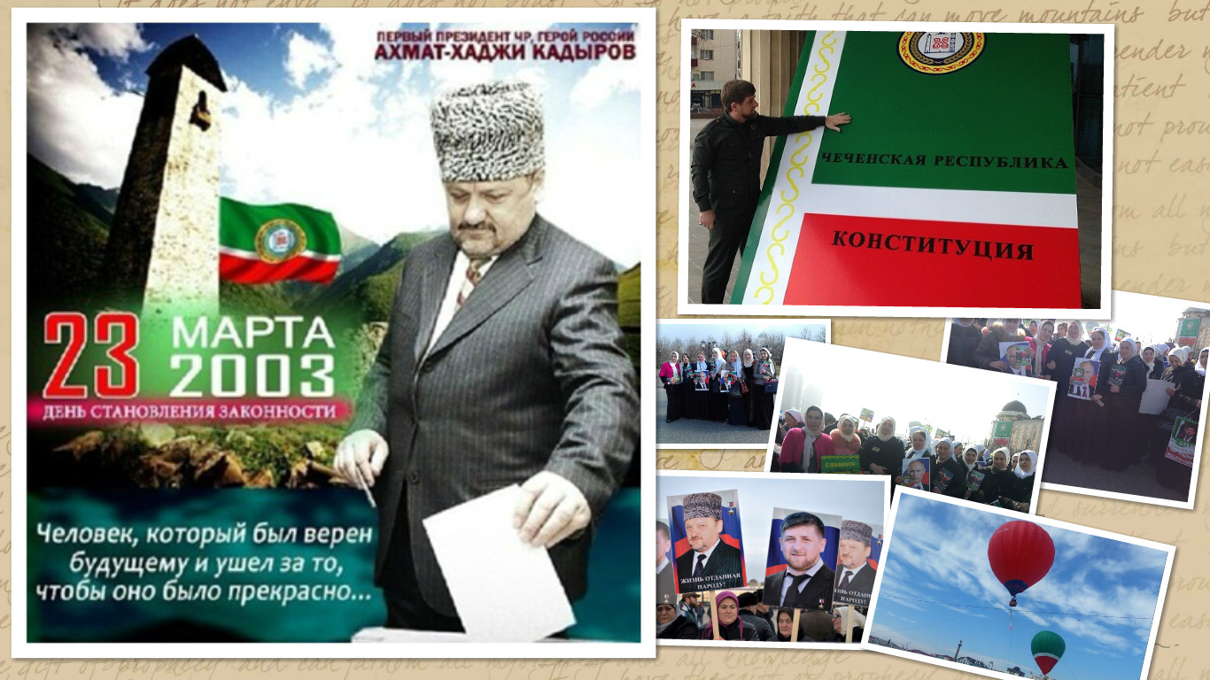23.03.2016В 2003 году состоялся всенародный референдум, на котором была принята первая в истории современной Чечни конституция, закрепившая развитие региона в составе России. Около 96% проголосовавших поддержали предложенную конституцию,автором которой был президент Ахмат-Хаджи Кадыров. После принятия конституции Ахмат-Хаджи Кадыров подписал указ об объявлении 23 марта Днем Конституции,праздничным выходным днём. Правильность того пути,который мы выбрали,и его результаты увидел весь мир.Сегодня исполнилось 13 лет этому великому событию, в честь которого в городе Грозном проходят праздничные мероприятия.