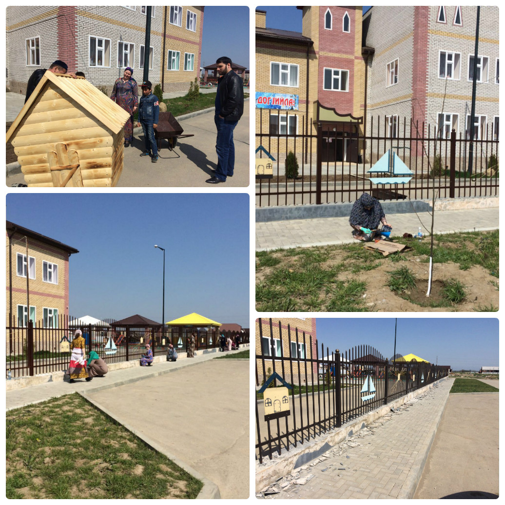 Продолжаем месячник по санитарной очистке и благоустройству территории МБДОУ "Детский сад №18 "Барт" г.Гудермес