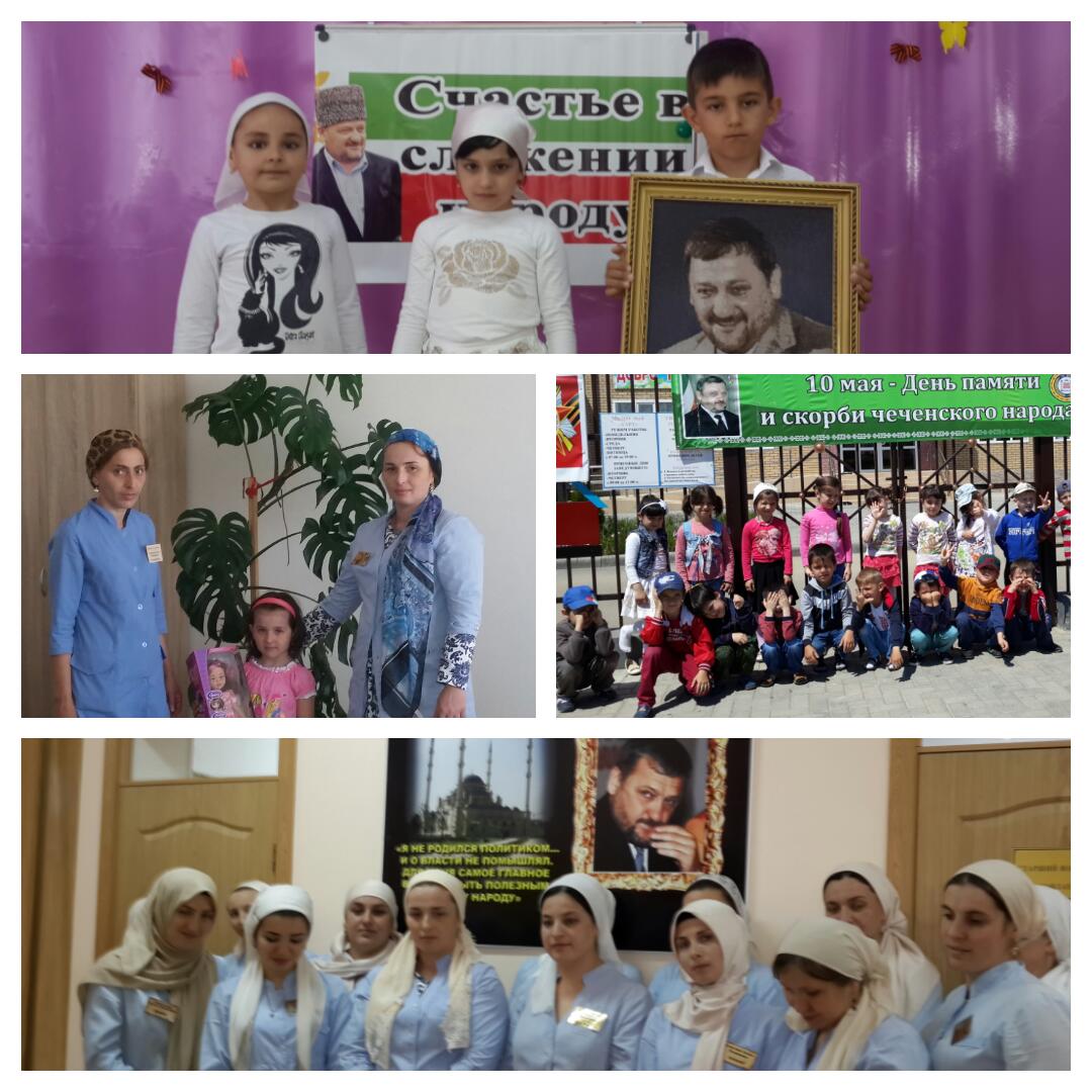 10.05.2016В целях реализации задач годового плана работы ДОУ по патриотическому воспитанию дошкольников, проведены мероприятия, посвященные Дню памяти и скорби. Оформлен стенд " Любим и помним", посвященный первому президенту А-Х.Кадырову. А также Управлением дошкольного образования Гудермесского района были выделены и вручены подарки детям из малоимущих семей. Старший воспитатель - А.М.Мовлаева провела беседу с воспитателями о Дне памяти и скорби народов Чеченской Республики. В своей беседе она отметила, что сегодня мы вспоминаем жертв трагических событий в истории чеченского народа, в результате которых погибли сотни тысяч ни в чем неповинных людей.