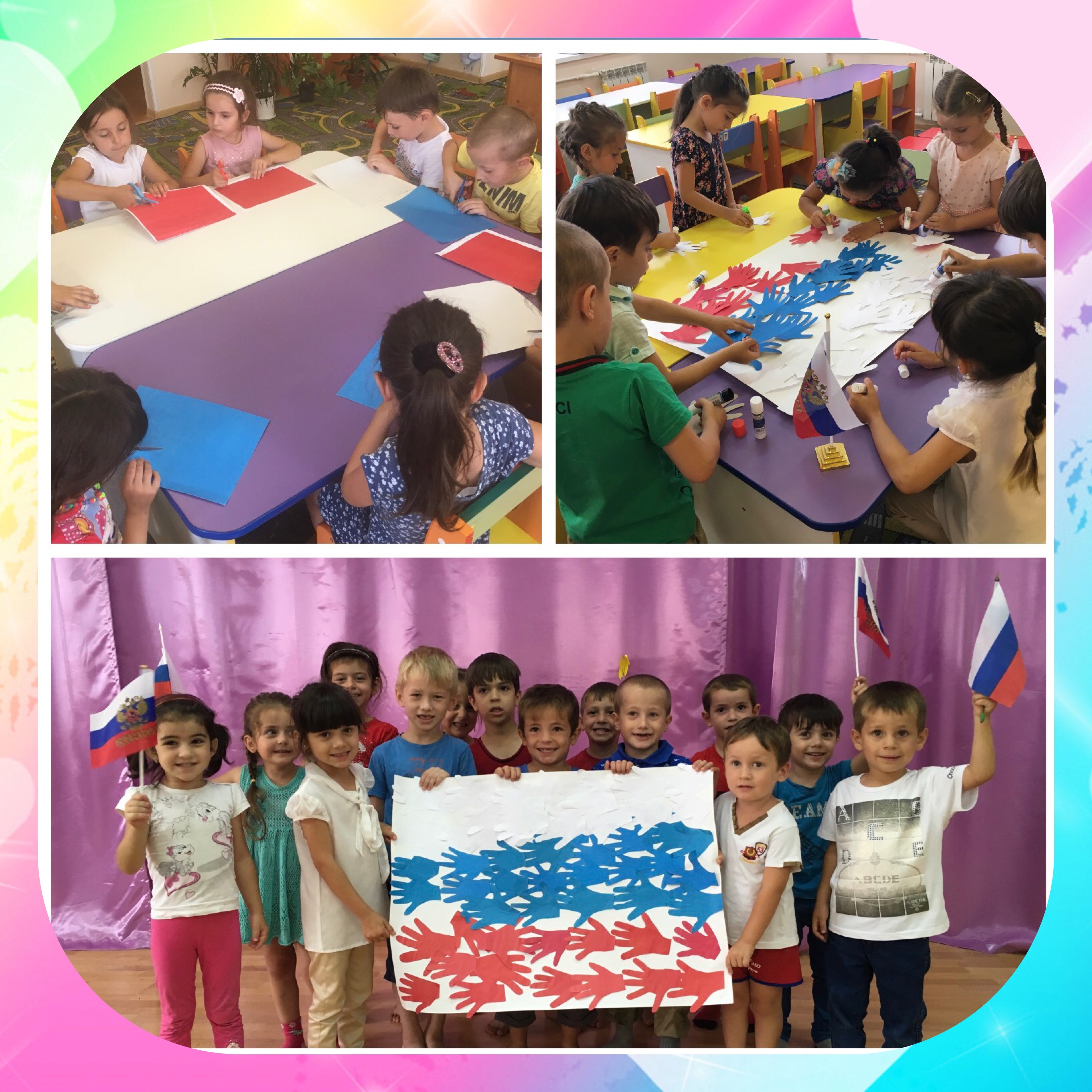 Цель: познакомить с символическим значением флага России; воспитывать любовь и уважение к своей Родине, гордость за свою страну, свой народ.