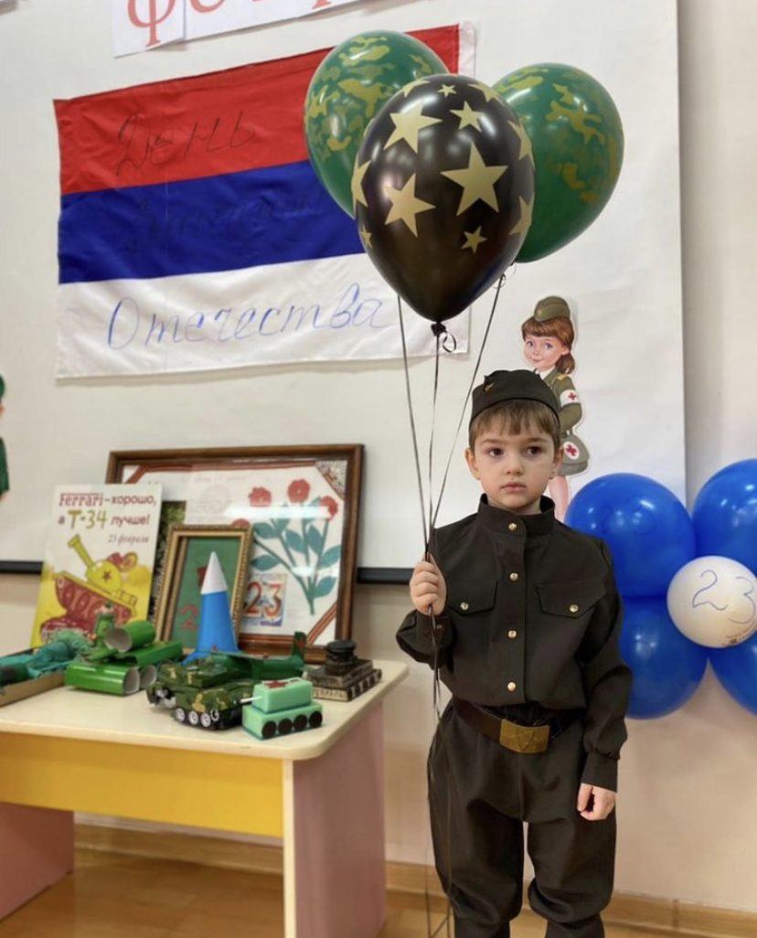 Сегодня в нашем садике прошло мероприятие приуроченное ко Дню защитника Отчества. Дети показали сценку, читали стихи и пели песни.