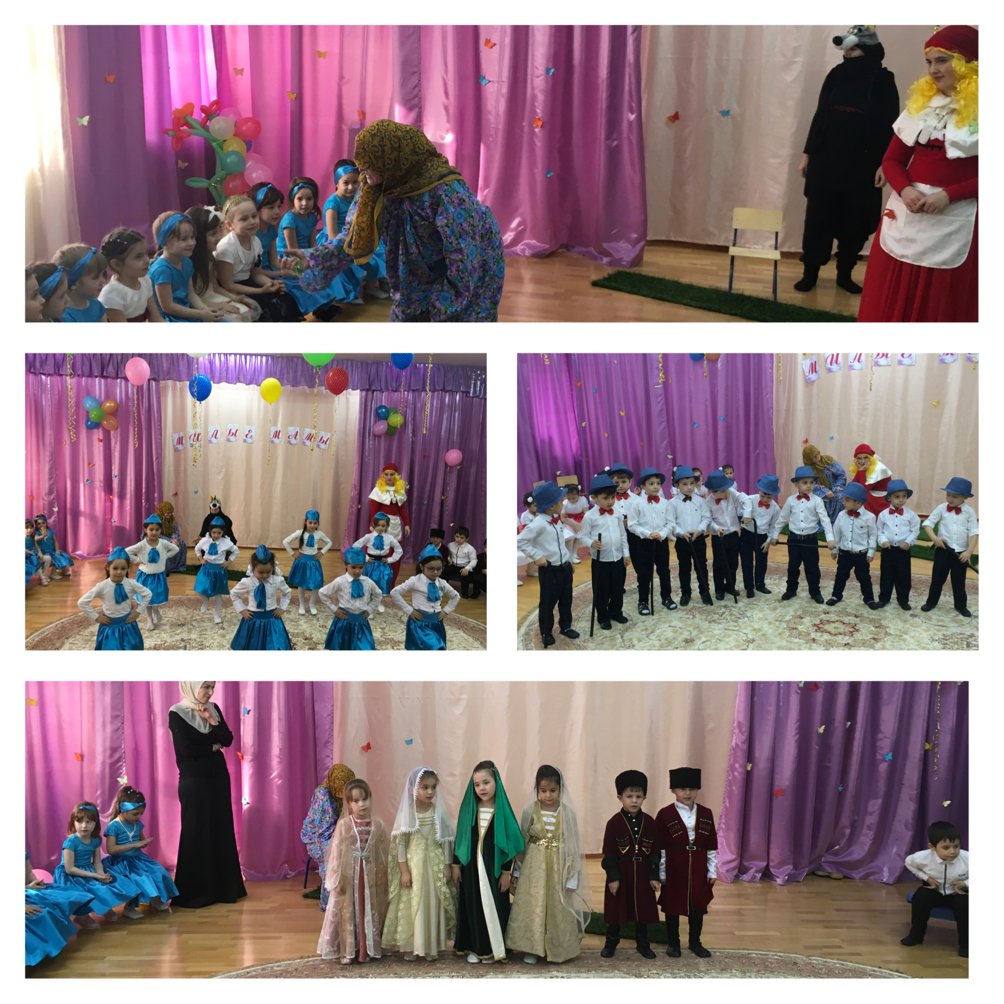 Ребята и воспитатели всех групп вместе с музыкальным руководителем Саиевой Айшат Умаровной подготовили для мам и бабушек праздничный концерт. Поздравления, веселые песни, танцы, конкурсы и, конечно, подарки, сделанные своими руками, - все это получили в подарок любимые мамы и бабушки от своих детей.