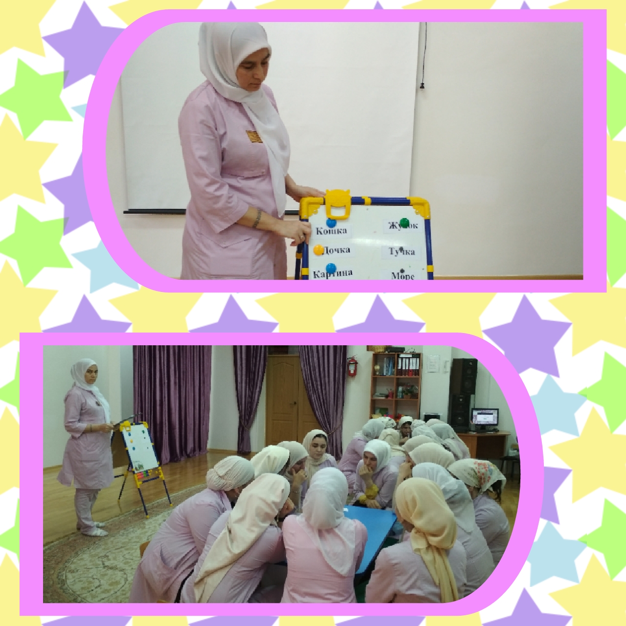 10.04.2018Учитель-логопед И.И. Гебертаева провела семинар-практикум для педагогов на тему: "Логопедическая радуга".