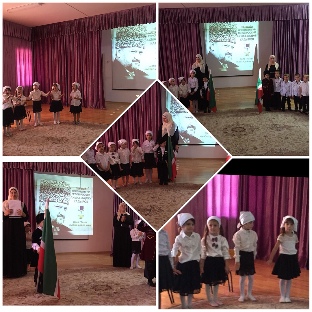 17.08.2018Сегодня в нашем ДОУ состоялось мероприятие ко дню рождения первого Президента Чеченской Республики,Героя России Ахмата-Хаджи Кадырова. Ахмат-Хаджи Кадыров запомнился чеченскому народу как выдающийся государственный, политический и религиозный деятель. Он был глубоко верующим и просвещенным, искренним и справедливым человеком с чувством долга, патриотизма, ответственности за судьбу своего народа.Благодаря его деятельности удалось прекратить военные действия на территории Чеченской Республики, провести референдум и определить тем самым курс дальнейшего созидательного развития региона.