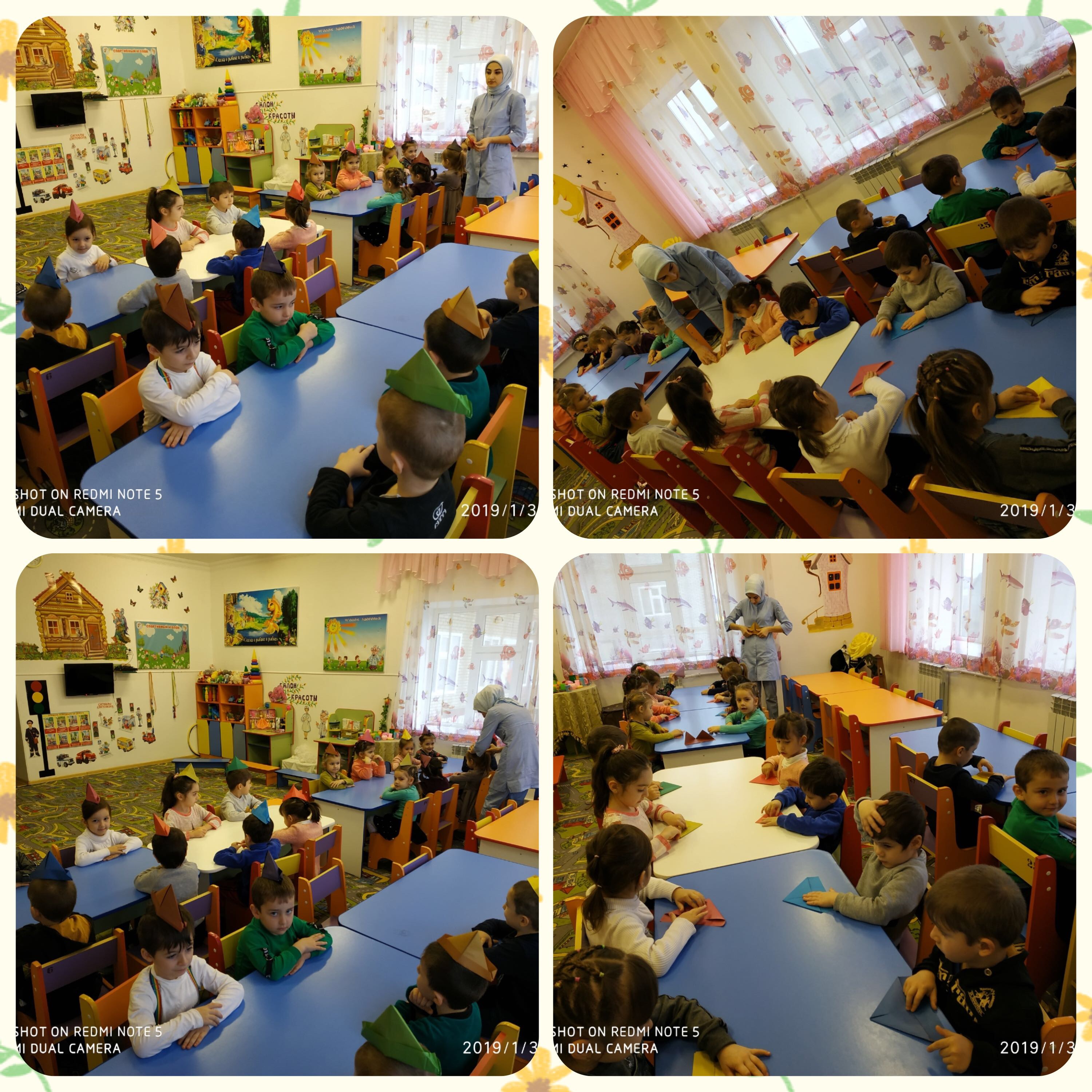 31.01.2019В средней группе Г "Рыбки", под руководством воспитателя Митаевой Хадижат, было проедено занятие по худоественно-эстетическому развитию на тему "Головной убор". Занятие было проведено, чтобы научить детей складывать ровно листы бумаги, соединяя концы и углы, развивать быстроту и ловкость складывания пилотки из бумаги.