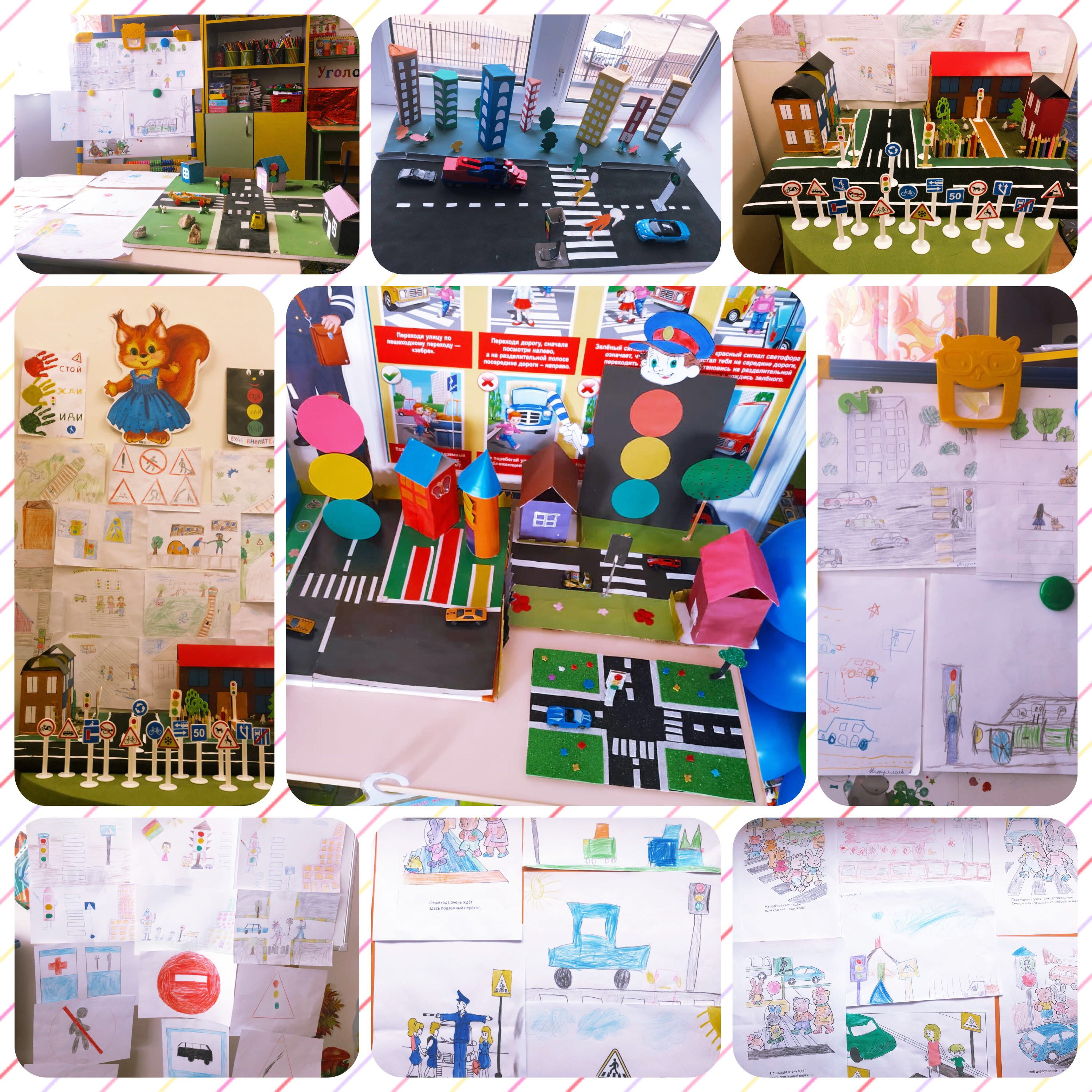 Сегодня прошла выставка детского творчества по правилам безопасности на дорогах.