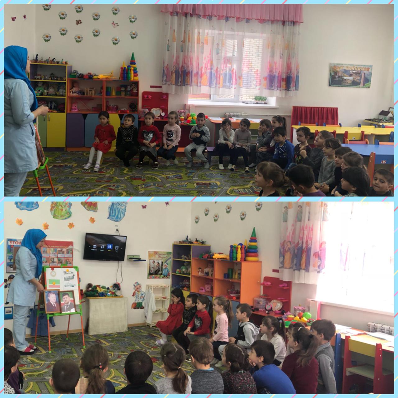 15.04.2019Сегодня в старшей группе "Б" "Ромашки" прошло занятие, посвященное празднику "День мира в Чеченской республике".