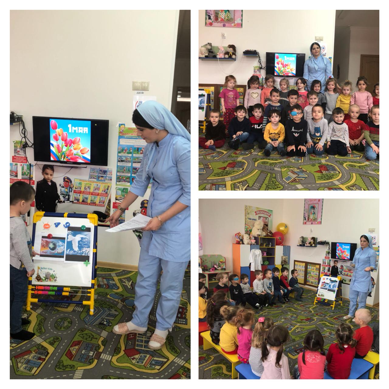24.04.2019Сегодня прошла беседа, посвященная празднику "День весны и труда" в младшей группе "А" "Веснушки". во время беседы дети узнали историю возникновения этого праздника, о том как важно относится с уважением к людям разных профессий. Занятие также было проведено для того, чтобы прививать детям интерес к к труду и рабочим профессиям, показать важность труда.